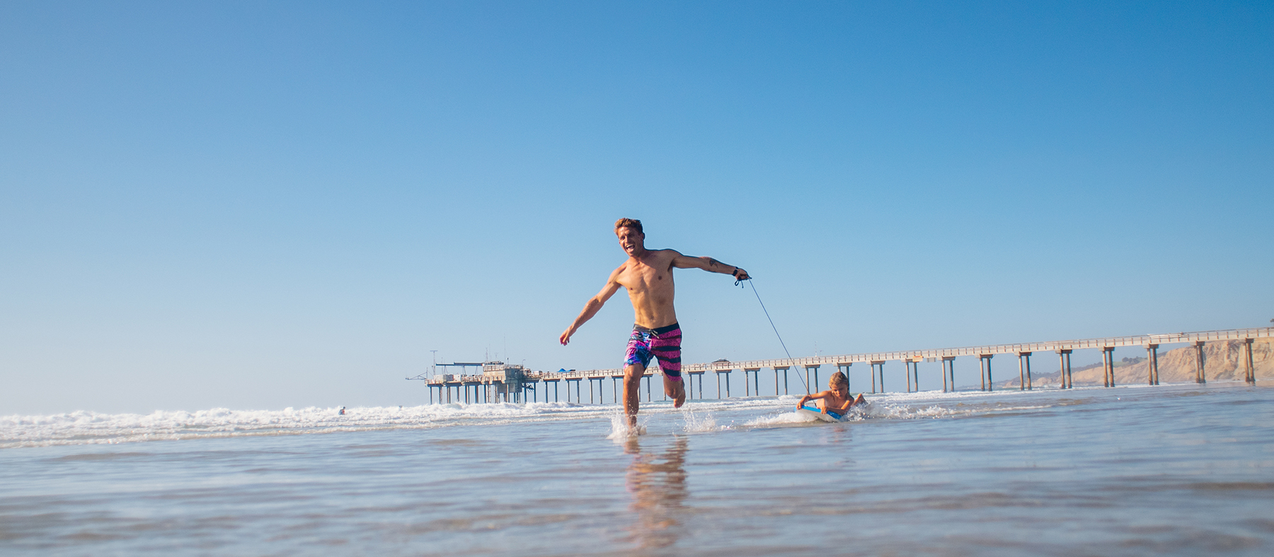 圣地亚哥70英里的海岸线为家庭游客提供了各种各样的海滩,适合游泳、冲浪、堆沙堡和其它各种家庭海滩活动。拉霍亚海岸(La Jolla Shores)有着一英里长的平缓沙滩,小而慢的波浪让这里的浅水滩成为小孩子们玩耍的理想之地,而大一些孩子也可以在这里学习冲浪、人体冲浪和其它水上活动。恩西尼塔斯(Encinitas)的月光海滩(Moonlight Beach)拥有一片广阔的沙滩和许多隐藏的凹洞,为大家提供了一个远离人群的私密体验。海滩离恩西尼塔斯仅几个街区,提供夏日户外音乐会和户外沙滩游戏等。被旅游频道公认为“北美十大最佳亲子海滩之一”的科罗纳多海滩(Coronado Beach)是那些想要整天泡在沙滩家庭的完美选择。这片又长又宽的白色沙滩为打波板球、建沙堡、放风筝和打排球提供了充足的空间